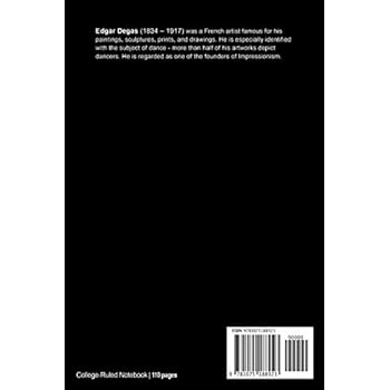 Art Journal: Edgar Degas - Dancers in the Wings - Art Cover College Ruled Notebook | 110 Pages Monday, 6 January 2020 Edit Category: Books,Arts & Photography,Individual ArtistsArt Journal: Edgar Degas - Dancers in the Wings - Art Cover College Ruled Notebook | 110 Pages DetailsArt Journal - Edgar Degas Cover Premium College Ruled Notebook Matte Soft CoverSize - 6"x9" 110 Pages Reviews Share this post